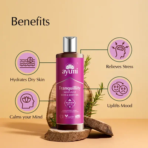 Laissez-vous porter par la tranquillité avec Tranquility Massage & Bath Oil, une crème hydratante à base d’huile corporelle profondément réparatrice fabriquée à partir des huiles naturelles les plus pures pour le massage. Infusé à l’huile de bois de santal, à l’huile d’encens et à l’huile de myrrhe, ce mélange aromatique ancre l’esprit, soulage le stress et favorise l’équilibre émotionnel. L’huile de lavande calme le système nerveux, tandis que l’extrait de souci apaise la sensibilité et l’inflammation, laissant votre peau douce, lumineuse et sereine après chaque utilisation.