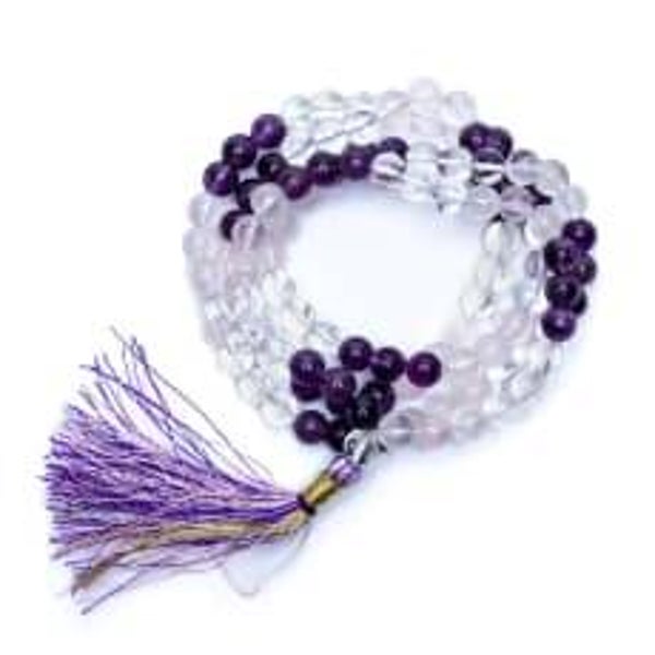 La combinaison de l'améthyste, du cristal de roche et du quartz rose est appelée "triangle d'or". Ce trio harmonieux crée un équilibre parfait entre l'esprit, le cœur et l'énergie, permettant d'accéder à un état de paix intérieure et de clarté émotionnelle. Ce mala est donc idéal pour les pratiques de méditation et de rituels de guérison.