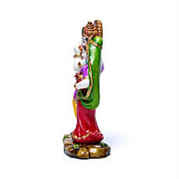 Statuette en résine colorée de Krishna et Radha. Krishna est représenté en train de jouer de la flûte, Radha se tenant à ses côtés.