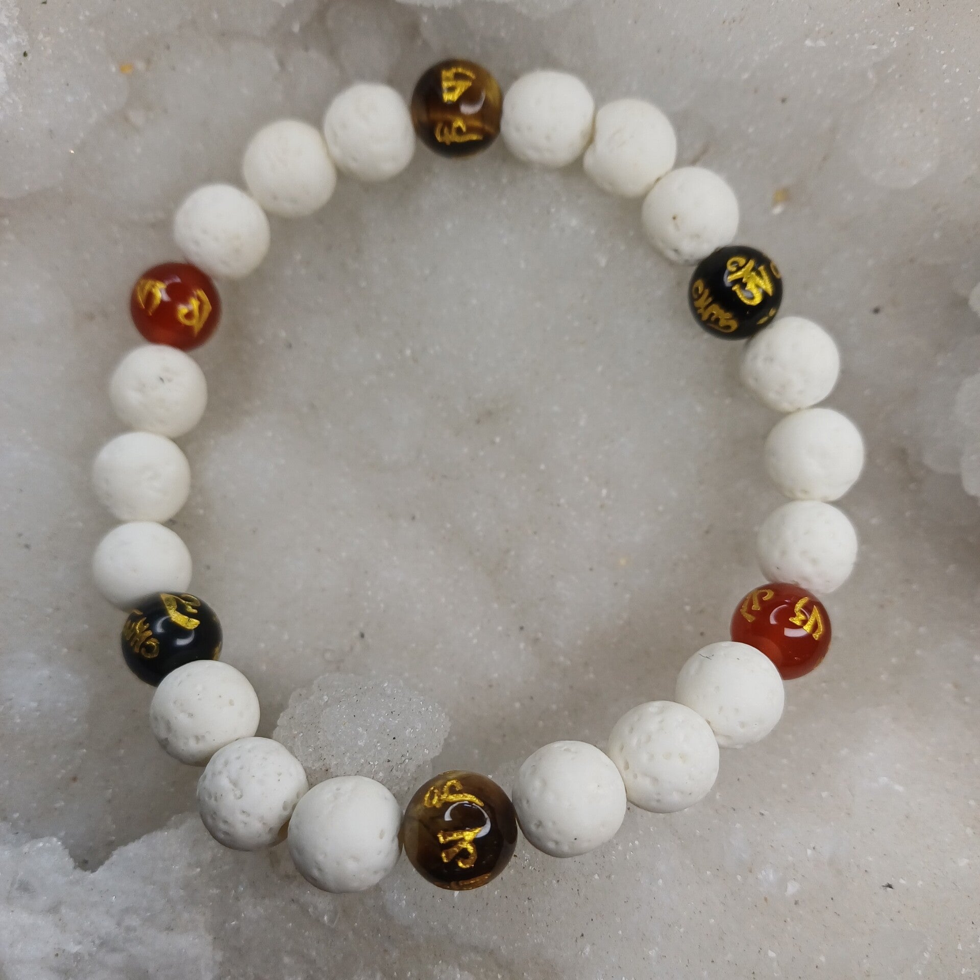 Bracelet en pierre de lave blanche, OM puissance & harmonie 8 mm