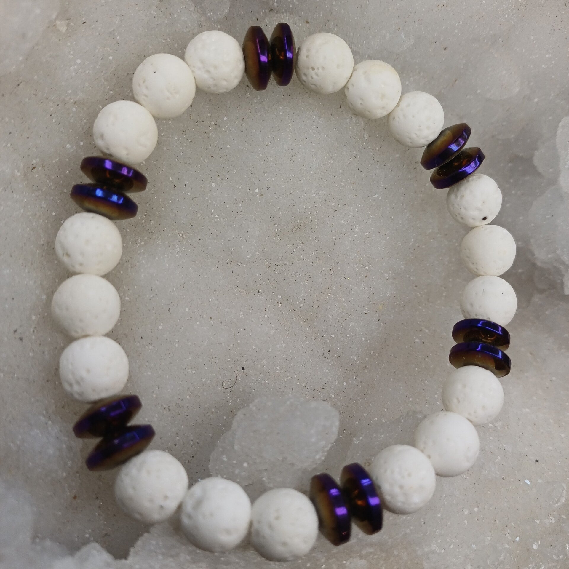 Bracelet pierre de lave blanche & hématite 8 mm