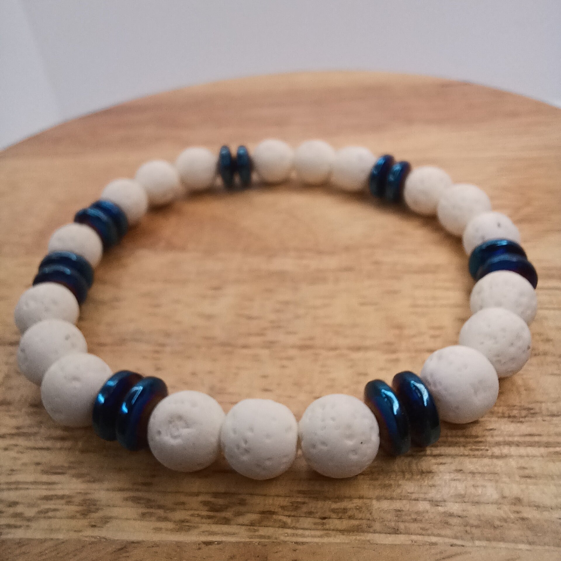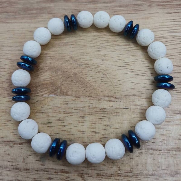 Bracelet pierre de lave blanche & hématite 8 mm