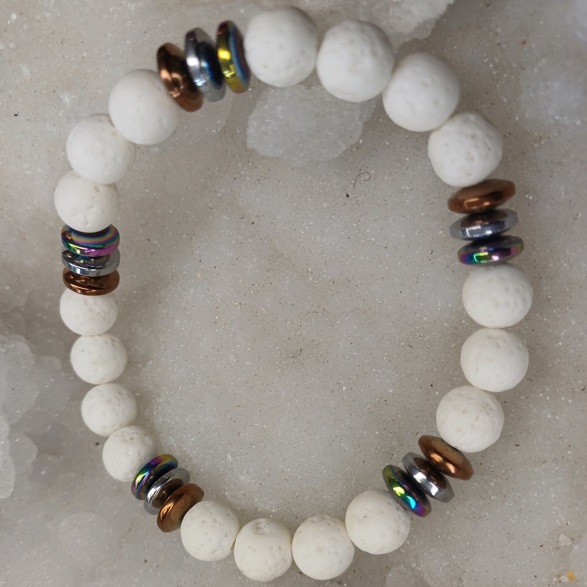 Bracelet en pierre de lave blanche & hématite 8 mm