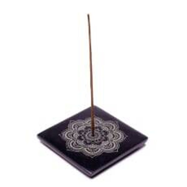Brûle encens en pierre à savon noire Mandala
