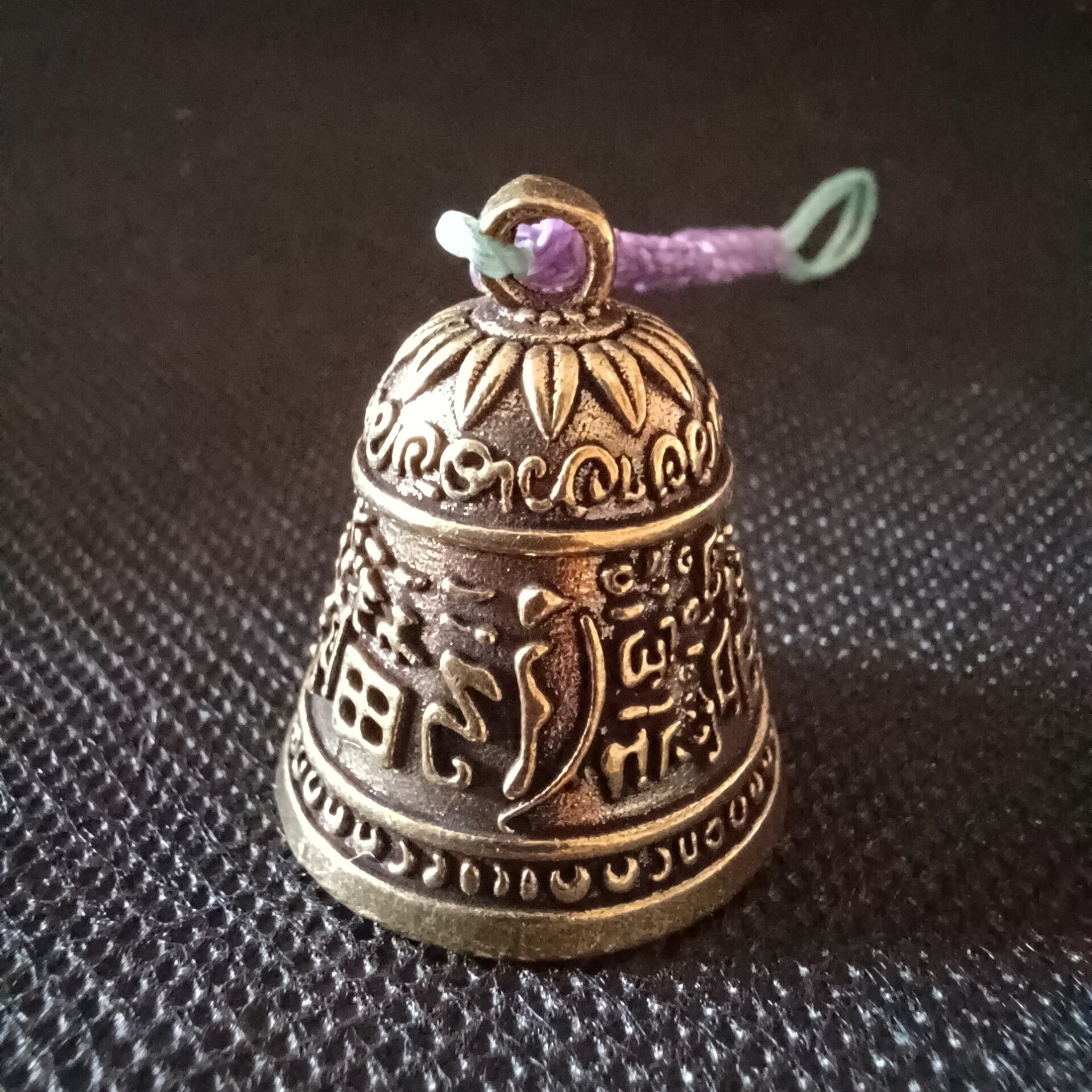 Les caractères gravés autour de la cloche sont généralement des mantras protecteurs.