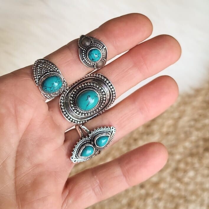 Ajoutez une touche d’authenticité à votre style avec cette bague ethnique, ornée d'une pierre de turquoise népalaise. Fabriquée à la main en laiton plaqué argent, elle allie élégance et durabilité. Chaque détail est soigneusement travaillé pour un plaquage résistant et un confort optimal.