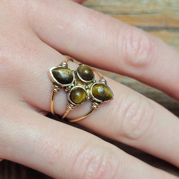 Bague Elisabeth en laiton & Œil du tigre