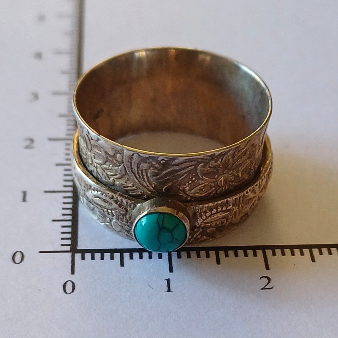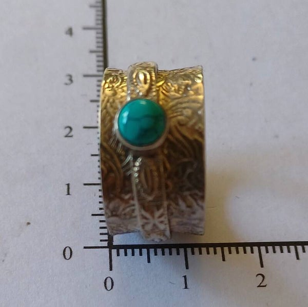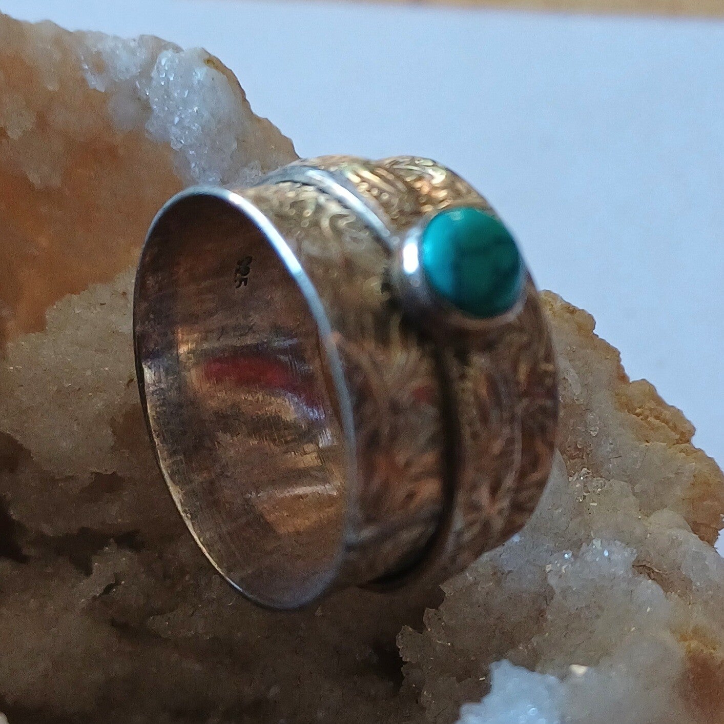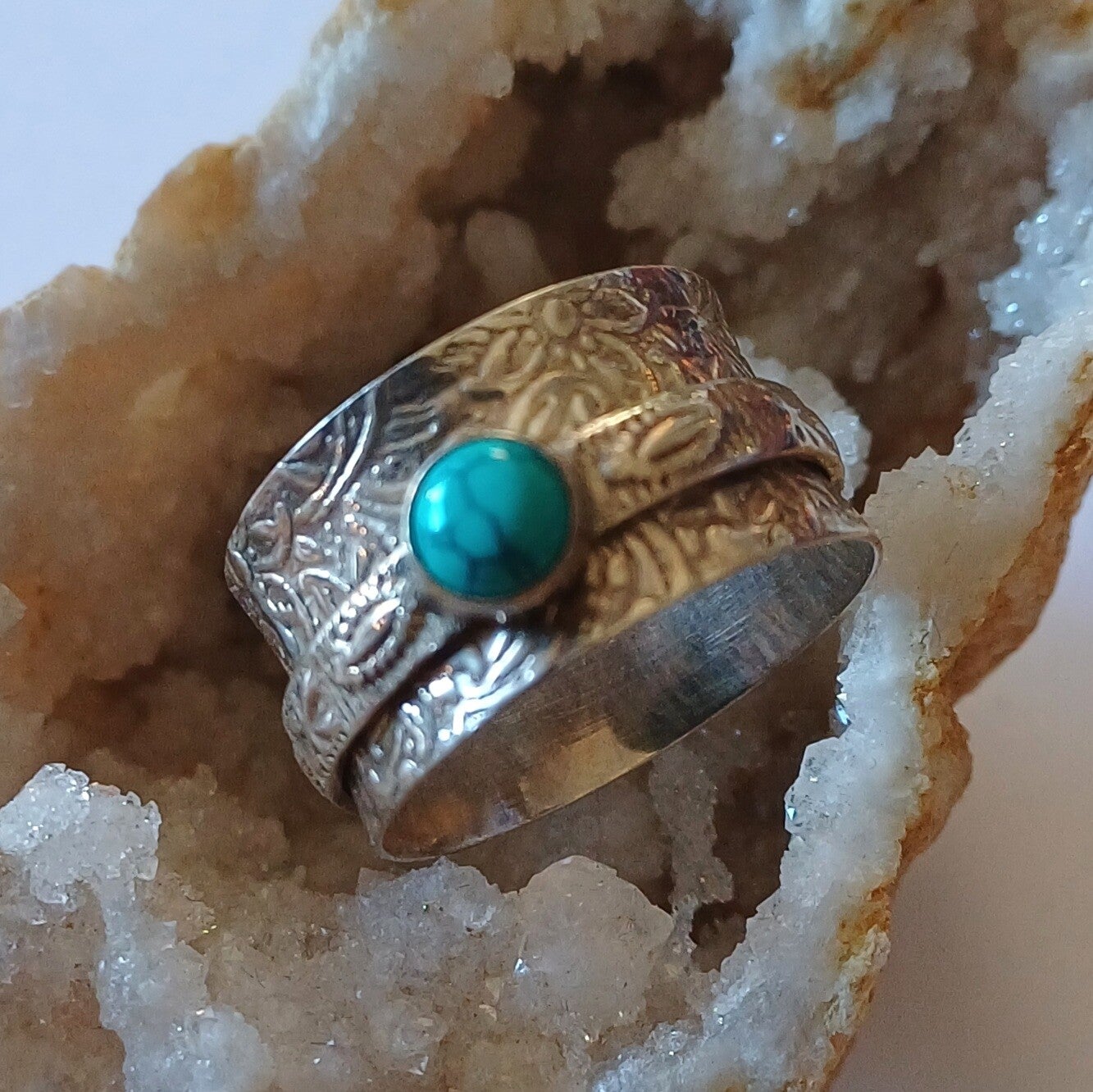 Cette bague en argent finement travaillé, ornée d’une turquoise aux teintes profondes, est une véritable gardienne d’énergie. Sa forme enveloppante symbolise la protection, comme un cercle sacré qui entoure et préserve celui ou celle qui la porte.